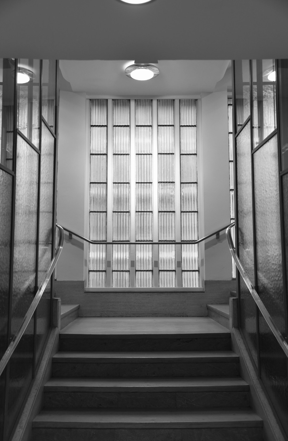 Both the lift glazing, which utilises an obscured pattern, and the main cathedral like window have been cleaned and repaired where necessary, whilst the chromium plated metal work – principally the banisters – has been polished back to its original splendour.