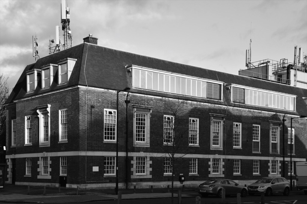 Standing on Green Lanes, N.21, at the junction with Firs Lane, the new exchange was developed by the General Post Office (G.P.O.) in the mid-1930’s and was once again designed by H. M. Office of Works from their offices on Storeys Gate, S.W.1.