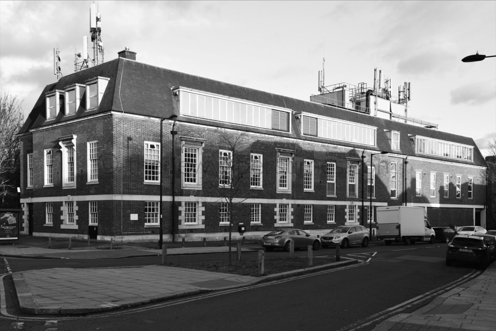 Originally built as a two-storey building with a flat roof, ‘Winchmore Hill Telephone Exchange’ was extended post-war, with an additional attic storey added and the building extended along Firs Lane. Whilst the later additions looked to match the original design, they lack its architectural detailing, with the attic storey windows looking particularly clunky.