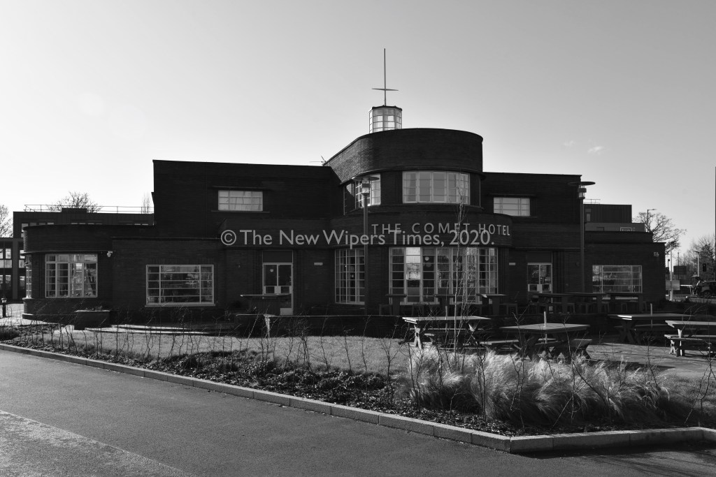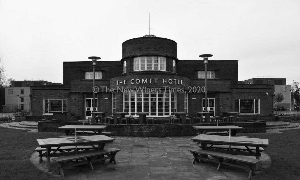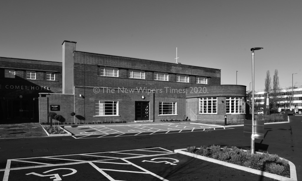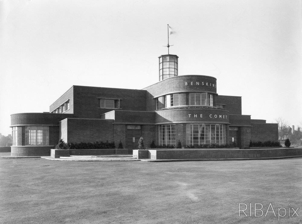 The new building took its name from the two-seat, twin-engined ‘de Havilland DH.88 Comet’ aircraft, which had been built at the aero manufacturer’s nearby Hatfield factory, itself a prominent ‘Art Deco’ landmark, which now serves as Hatfield Police Station.